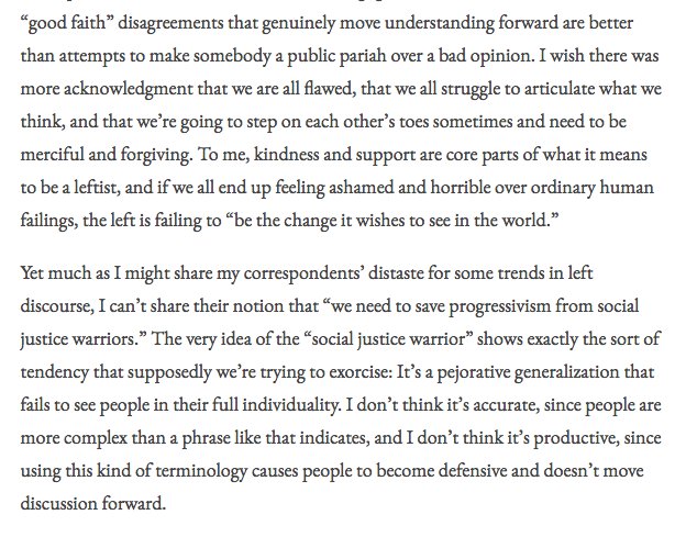 I really enjoyed this article by @NathanJRobinson on why it is unhelpful to rail against "SJWs". He advocates a more humane approach to intellectual disagreements. In @curraffairs https://www.currentaffairs.org/2018/05/fear-of-the-sjw …pic.twitter.com/IUiLhvNolD