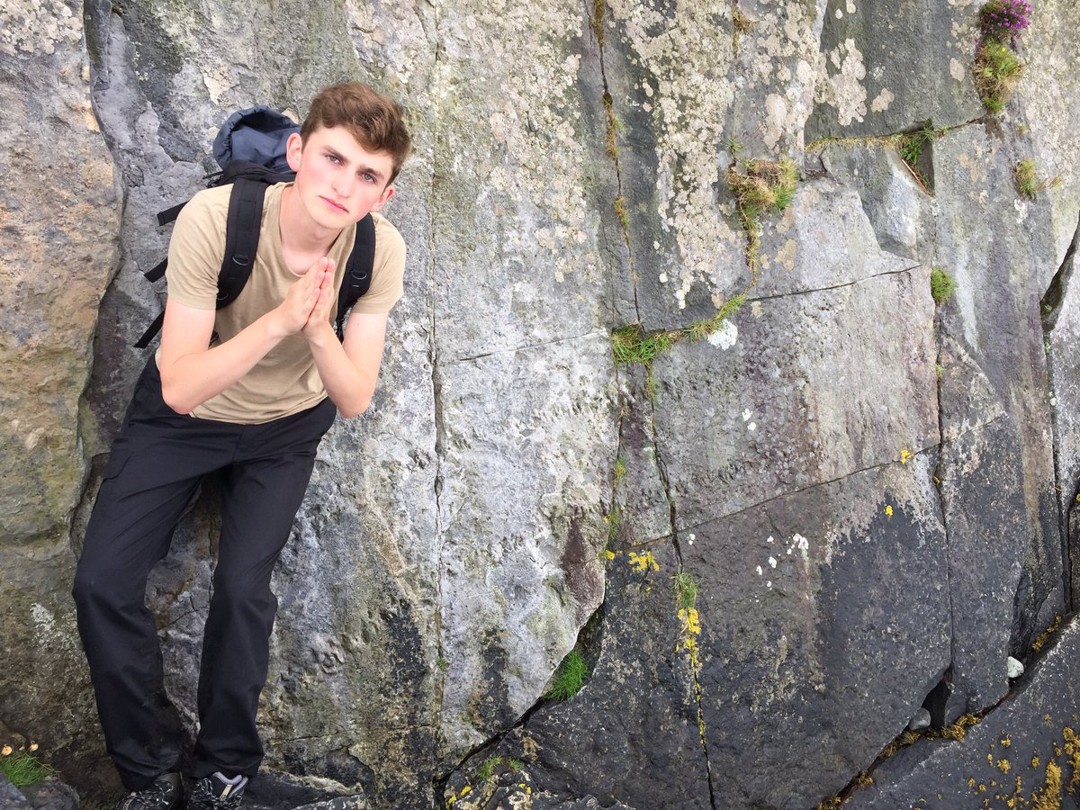 Here I am paying respects on the Isle of Arran some 300Ma later. (Fossil footprints through my legs to the right.)pic.twitter.com/Oj3YExlUUV