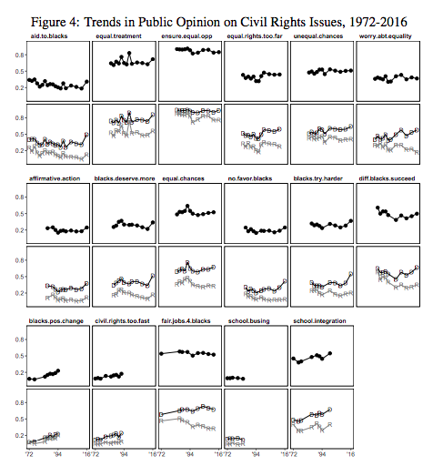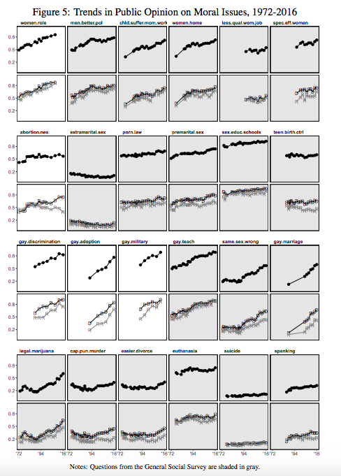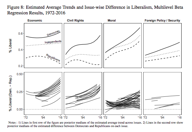 For Wednesday, two working papers of note. 1) There is no Culture War. On moral issues, both Dems and GOP are trending leftward over the long term. It just looks like a war because Dems are moving a bit faster, widening the gap. https://static1.squarespace.com/static/50e64c35e4b02b36141d5175/t/5c3bc0c470a6ad9840caf482/1547419844717/12_22_JoP_SecularTrends_Final.pdf …pic.twitter.com/qDfMetW9Ln