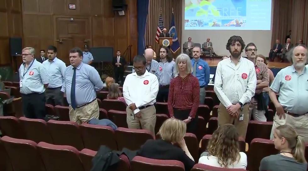 Federal workers turn their backs on Trump Agriculture secretary after he chose to relocate them from DC to Kansas City http://hill.cm/T1sxJ0I pic.twitter.com/oqgNQFDyDR