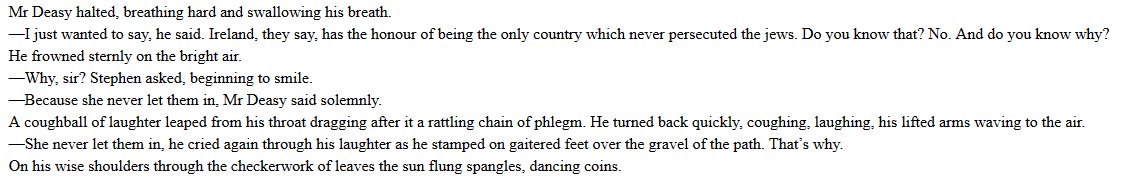 Since you're talking about Joyce, you might enjoy this passage from Ulysses, which explains why Conservatives/Libertarians are not really mistreated in academia:pic.twitter.com/FziYP12gX4