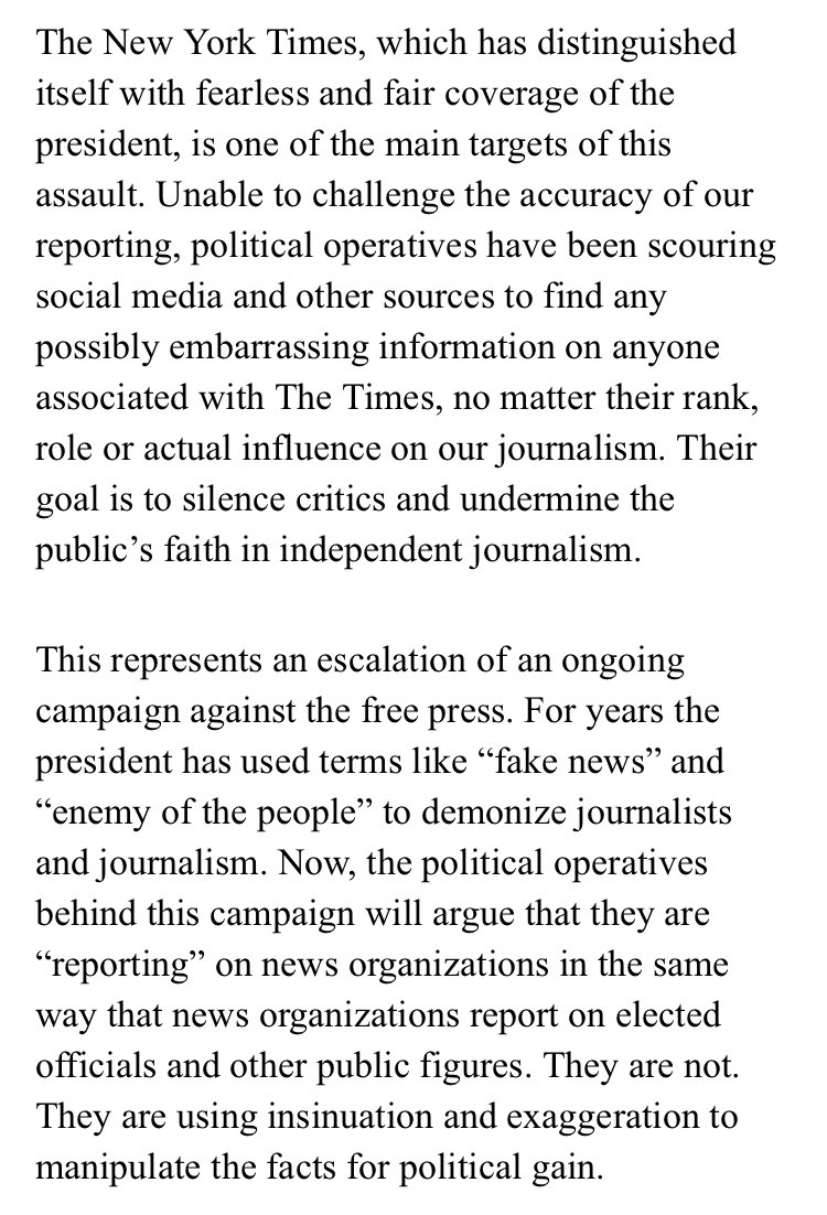 "The New York Times 'has distinguished itself with fearless and fair coverage of the president'." --New York Times publisher, 8/25/19https://twitter.com/patrickhealynyt/status/1165696884566106114 …