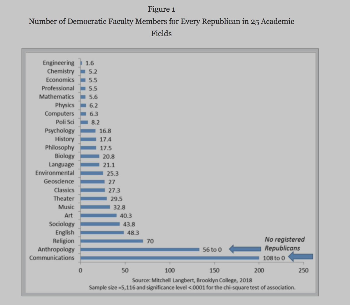 "The D(Democrat):R(Republican) ratio by professor rank... was highest among assistant professors (10.5:1) compared to associate (8.7:1) and full professors (8.2:1)... the trend for the D:R ratio... to increase will likely continue...”