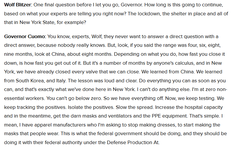 Cuomo said up to nine months, two days ago. "A number of months by anyone's calculation".pic.twitter.com/J0lZ3rsvYw