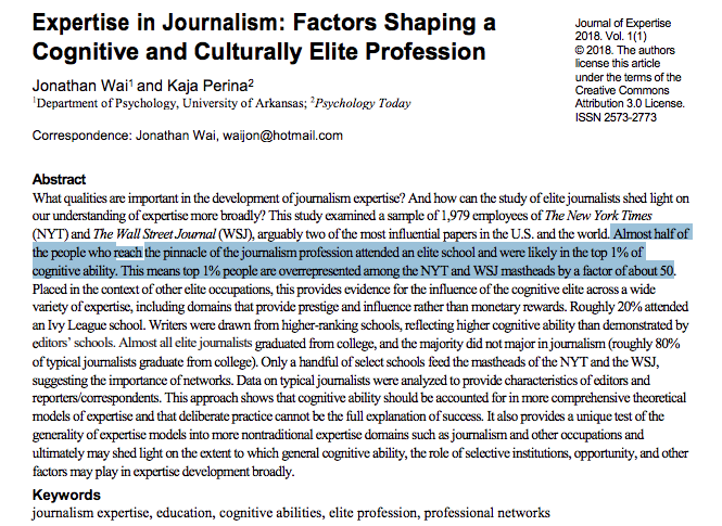Tldr: the people who shape how others think tend to be pretty good at thinking -- and they also tend to deny the importance of IQ differences in ability to think.https://twitter.com/robkhenderson/status/1244261836456951810 …