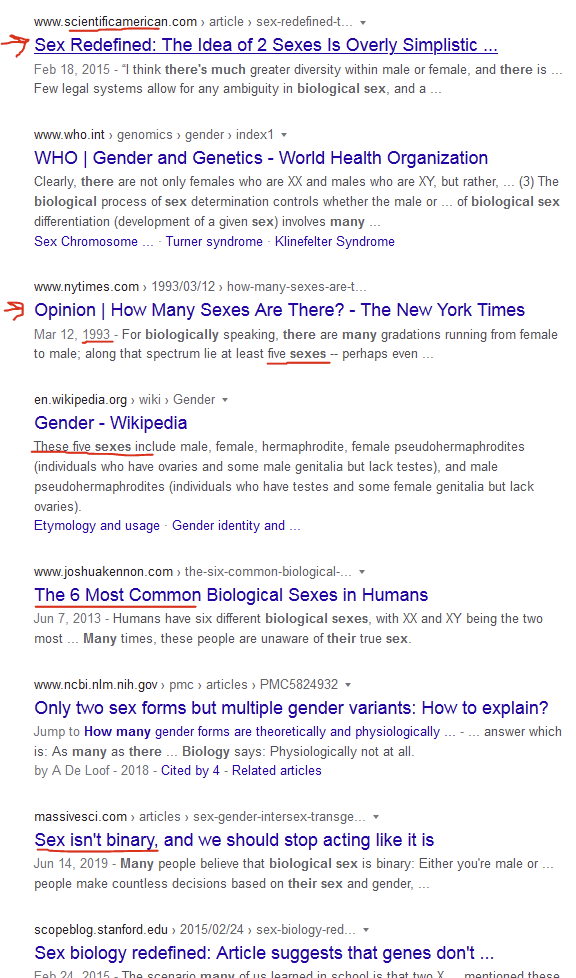 I get similar results (from Serbia). However, that top article is also ideological. "But why has biology taken all this time to finally recognize that the existence of multiple sexes is normal?" The article claims it's "patriarchal ideology". 100% fantasy Google answers.