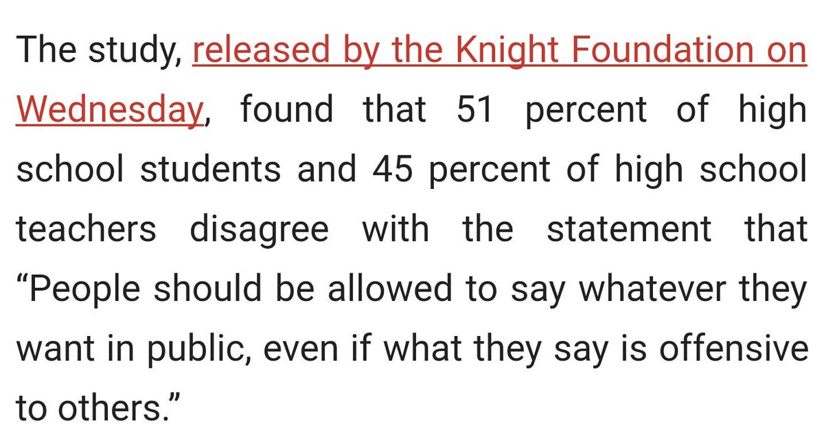 Study finds that 45% of American high school teachers aren't fully on board with this "free speech" thing pic.twitter.com/nhFaGJUN7X