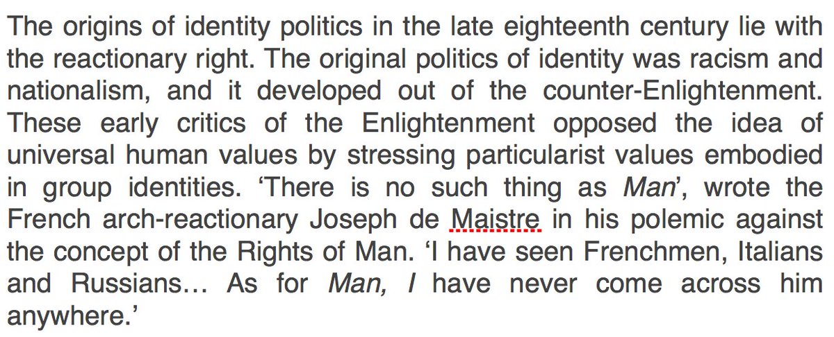 Kenan Malik on how identity politics originates with the reactionary right and the counter-Enlightenment. https://kenanmalik.wordpress.com/2017/07/23/not-all-politics-is-identity-politics/ …pic.twitter.com/YBypZ1qtlr