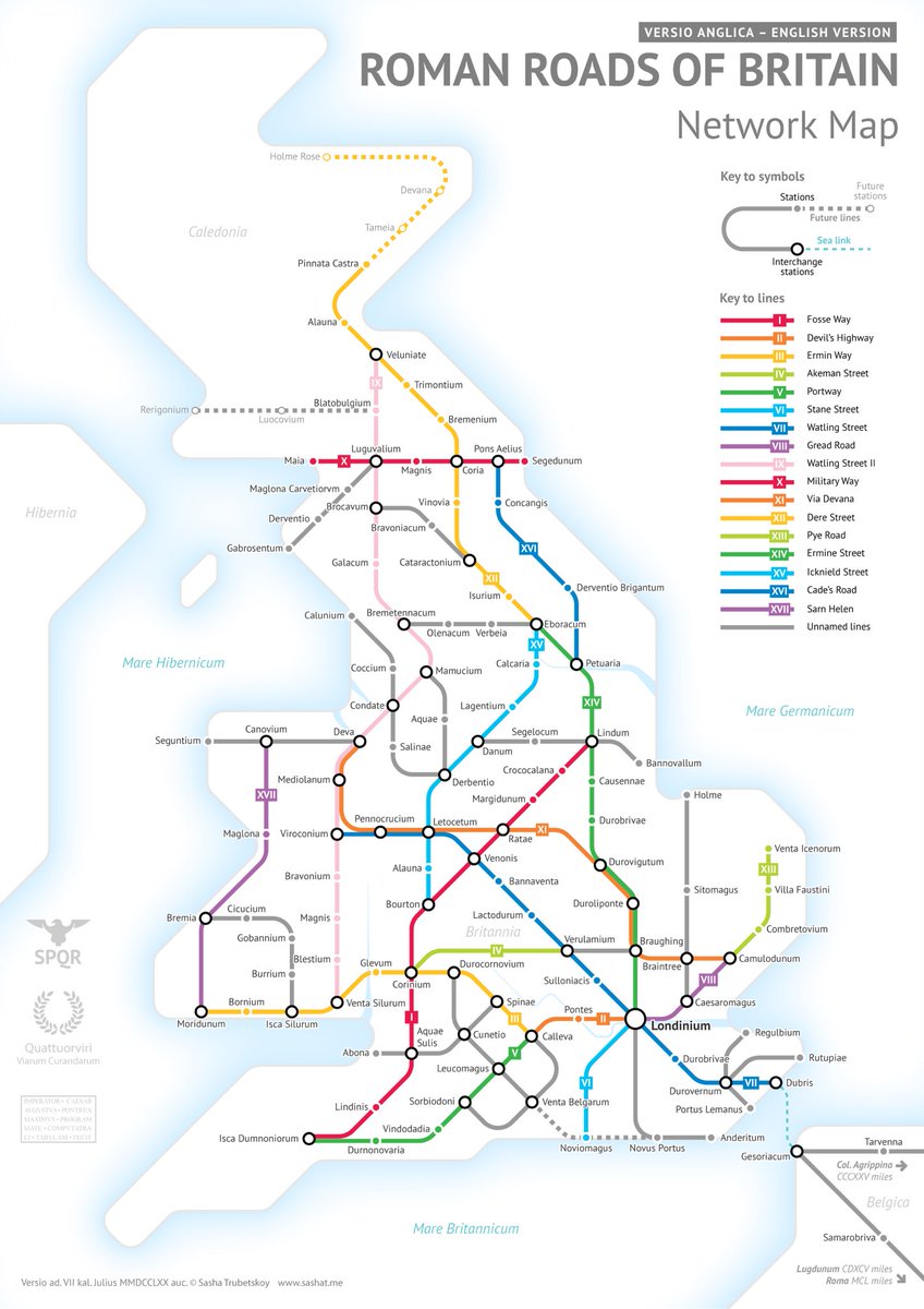 Roman roads of Britain depicted as a Tube map. #londiniumpic.twitter.com/hQnJFbtZ3j