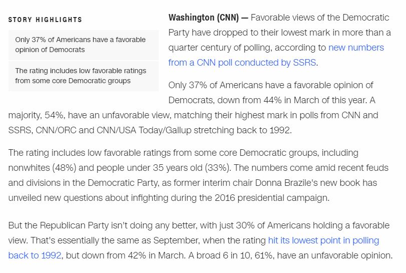 New @CNN poll: At 37%, favorable views of Democratic Party hit lowest mark in 25 years http://www.cnn.com/2017/11/07/politics/cnn-poll-republicans-democrats-taxes/index.html …pic.twitter.com/QRBawyLJcS
