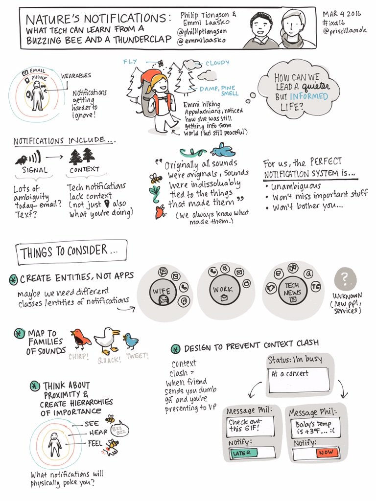 @philliptiongson &@emmilaakso on how to look to nature to design better notifications#ixd16#sketchnotespic.twitter.com/2hPfteNC3p