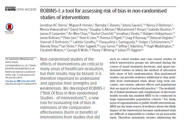 Hot off the press! The ROBINS-I tool for assessing risk of bias in non-randomised studies of interventions http://www.bmj.com/content/bmj/355/bmj.i4919.full.pdf …pic.twitter.com/Q7YgDC8HPu