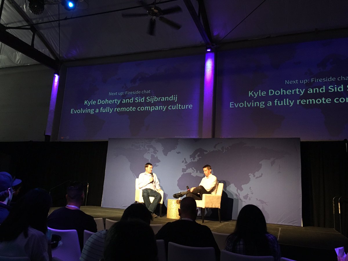 Fireside chat with @kydoh and @sytses about how @gitlab evolved as a fully remote company. Key nuggets - 1. HOW you use tools matters 2. We have a policy to not bring up politics at work. There’s a culture diff between the bay and other regions. There are no clear solutions yet.pic.twitter.com/w9ApTFLMaW