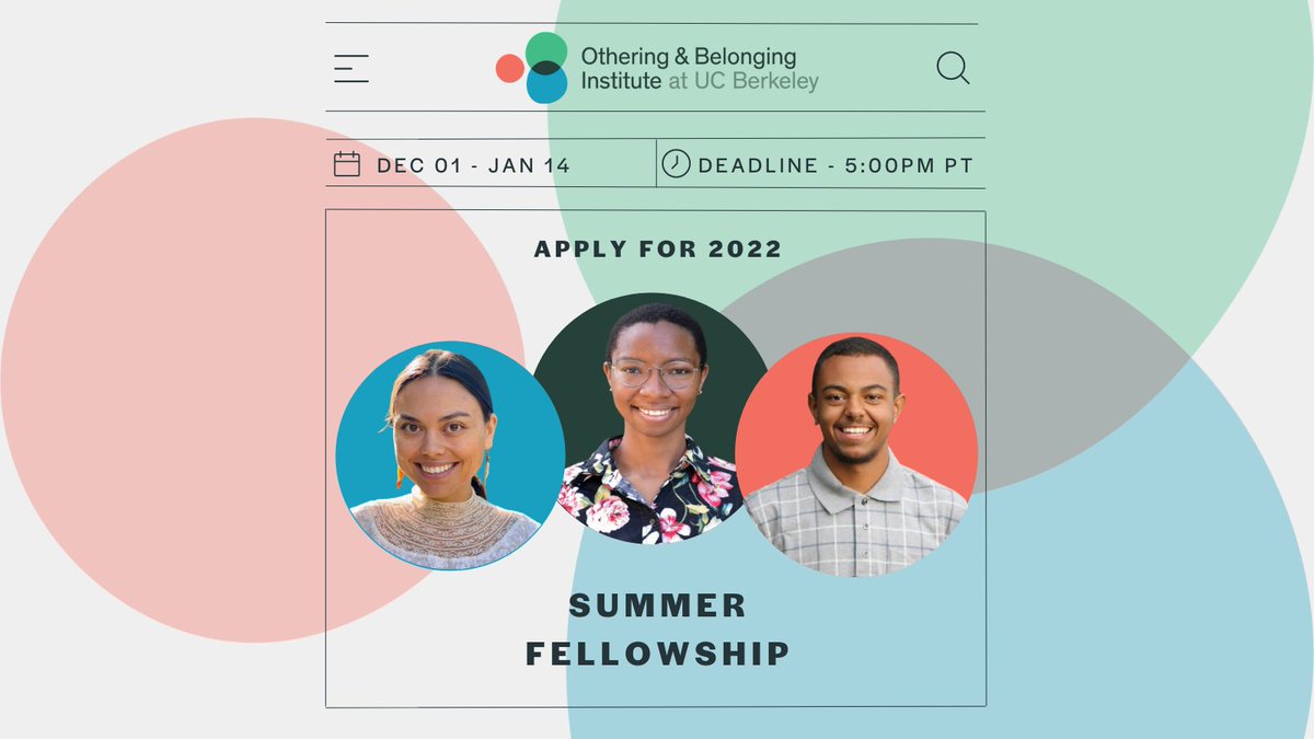 #OBI Summer Fellowship is a paid research experience for individuals seeking to develop their research skills by engaging w/ the Institute’s multidisciplinary research, analysis, policy, & strategic narrative work.#Summer#Fellowship#student DETAILS: https://belonging.berkeley.edu/summer-fellowship-1 …pic.twitter.com/c1cWAMUdmf