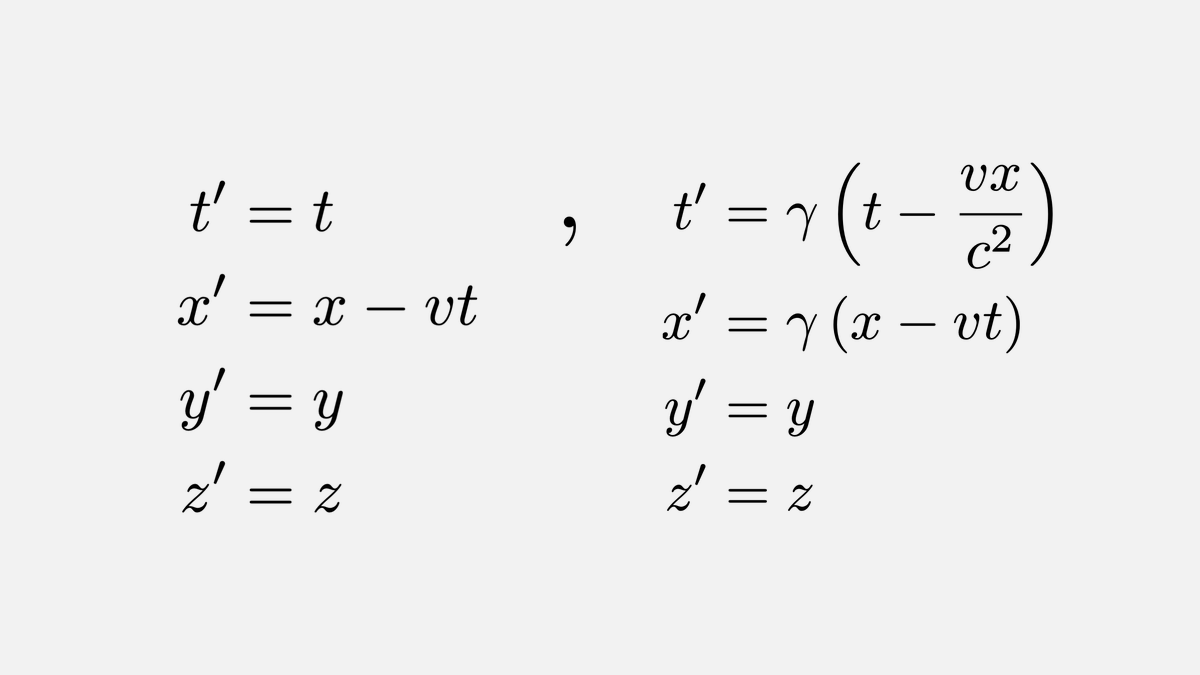 It took us 255 years to go from Galilean transformations for falling bodies to Lorentz transformations that are in accordance with Einstein's special relativity.pic.twitter.com/hY8F60VogW