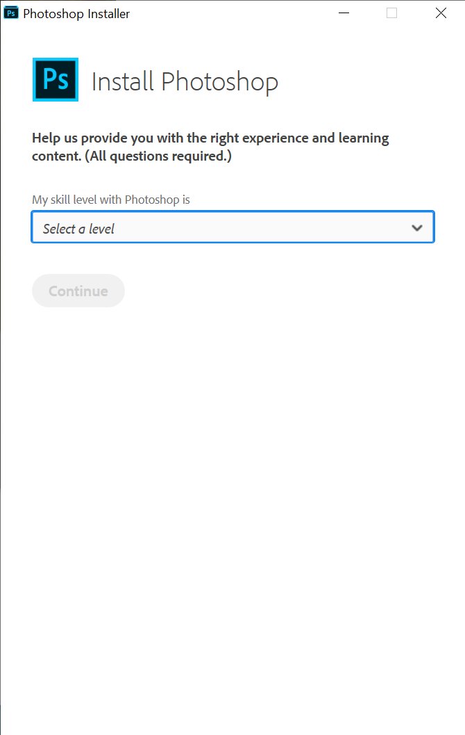 @Photoshop? Forcing me to answer questions to even install your software? Why not defer to when I actually want to learn? Or even on first launch? Also took 40 minutes to install on an absolute beast of a machine.pic.twitter.com/i6m2A5mfsn
