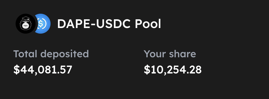 $DAPE tokens are swappable with$USDC on the Swap section of our app, powered by@ProjectSerum to get instant liquidity. Earn trading fees collected on$DAPE -$USDC swaps by providing liquidity on$DAPE -$USDC liquidity pool on@AtrixProtocol.pic.twitter.com/YxtBEig8fJ