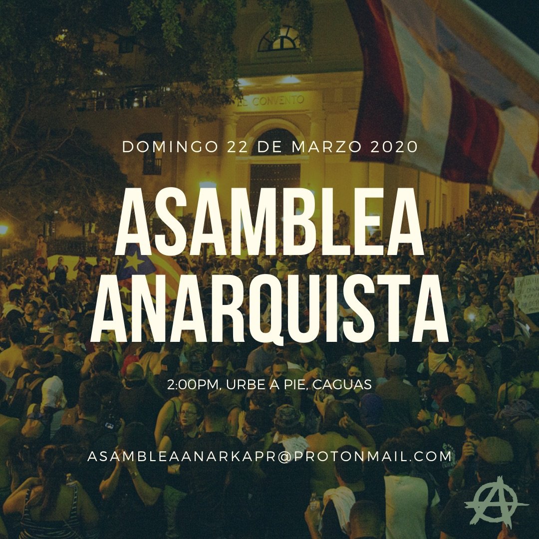 March 22nd our Puerto Rican comrades are having their first anarchist assembly. For comrades with family on the island this is the place to be! Ahora es el momento!pic.twitter.com/xe5B6oxDXh