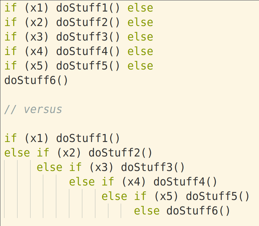 On rare occasions, overriding style rules makes sense like in if-then-else chains:pic.twitter.com/PmhMtXbUQt