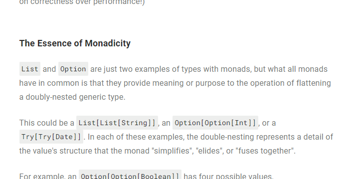 This lesson on Monads was the hardest one I've had to write for http://scala.zone  so far. Without focusing on the finer details (yet) I've tried to get beginners as close as I can to having an intuition for what a monad is (in a fifteen-minute read). https://scala.zone/courses/scala-beginner/fors/monads …pic.twitter.com/DDhBZQukuL