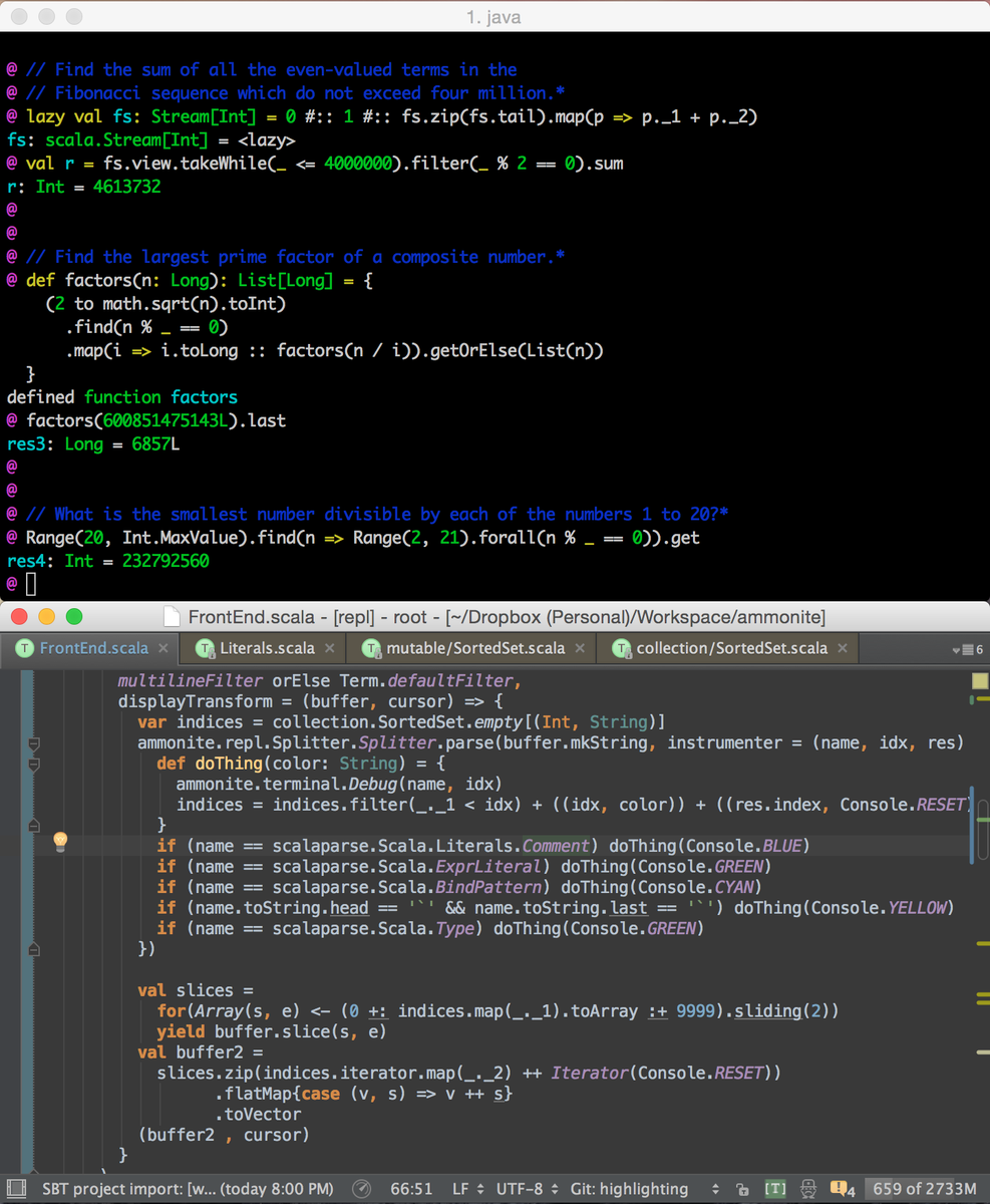 What if you could add Scala syntax highlighting to your #scala REPL with 20 lines of code? Would anyone like that?pic.twitter.com/Ro7pPx06TO