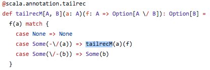 If f contains a recursive call to the enclosing method in tail position, only the pattern matching approach supports tailrec optimization. You can't write this using map or fold:pic.twitter.com/c3GzL8RLIb