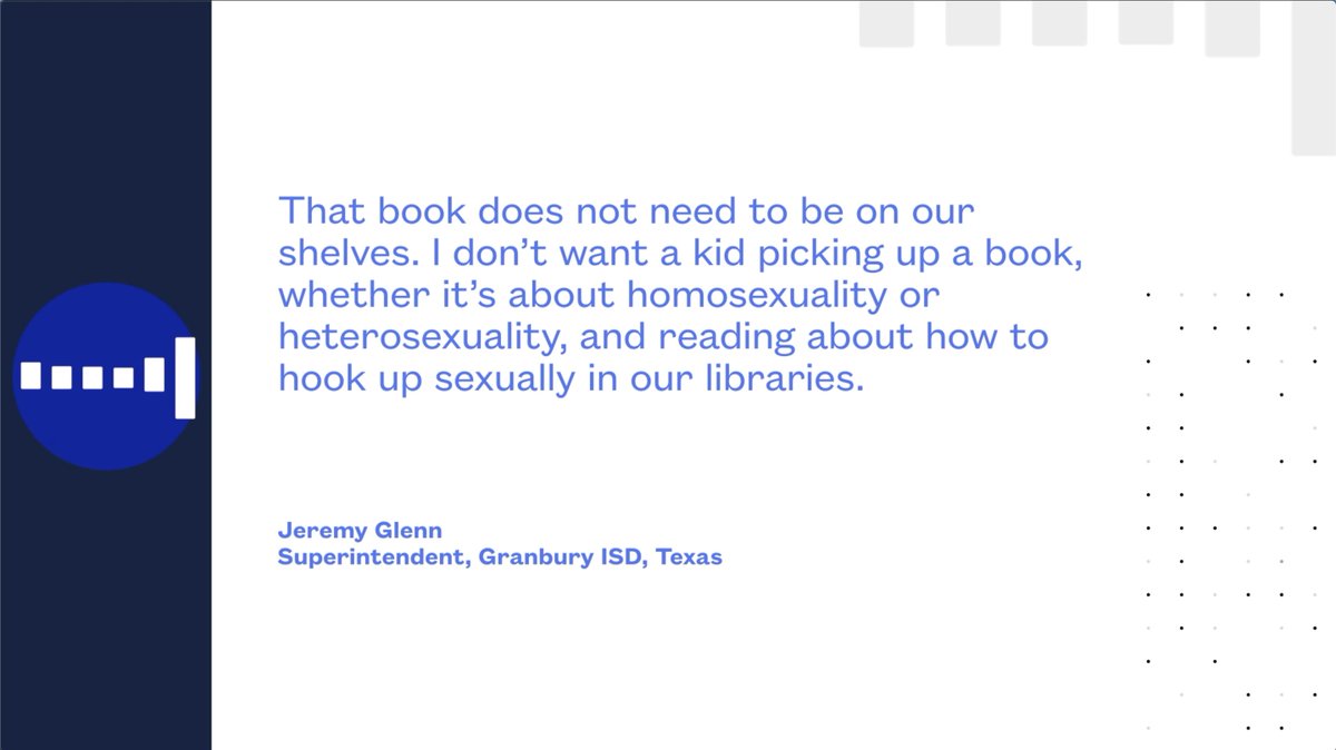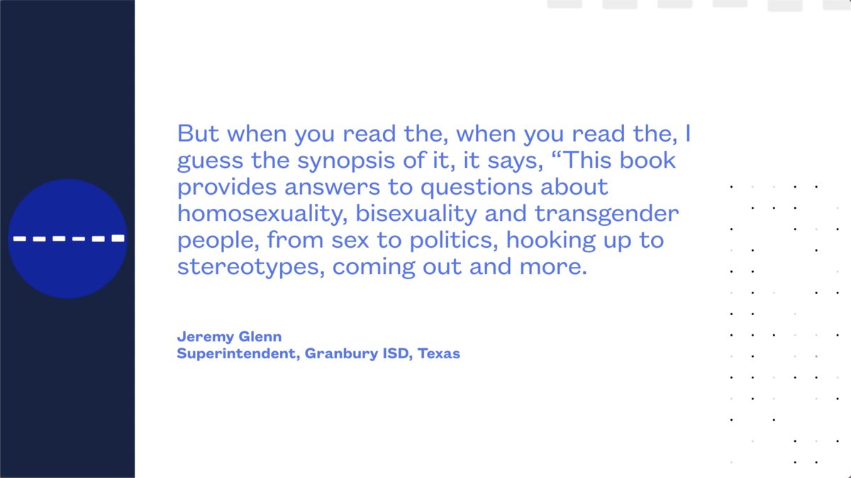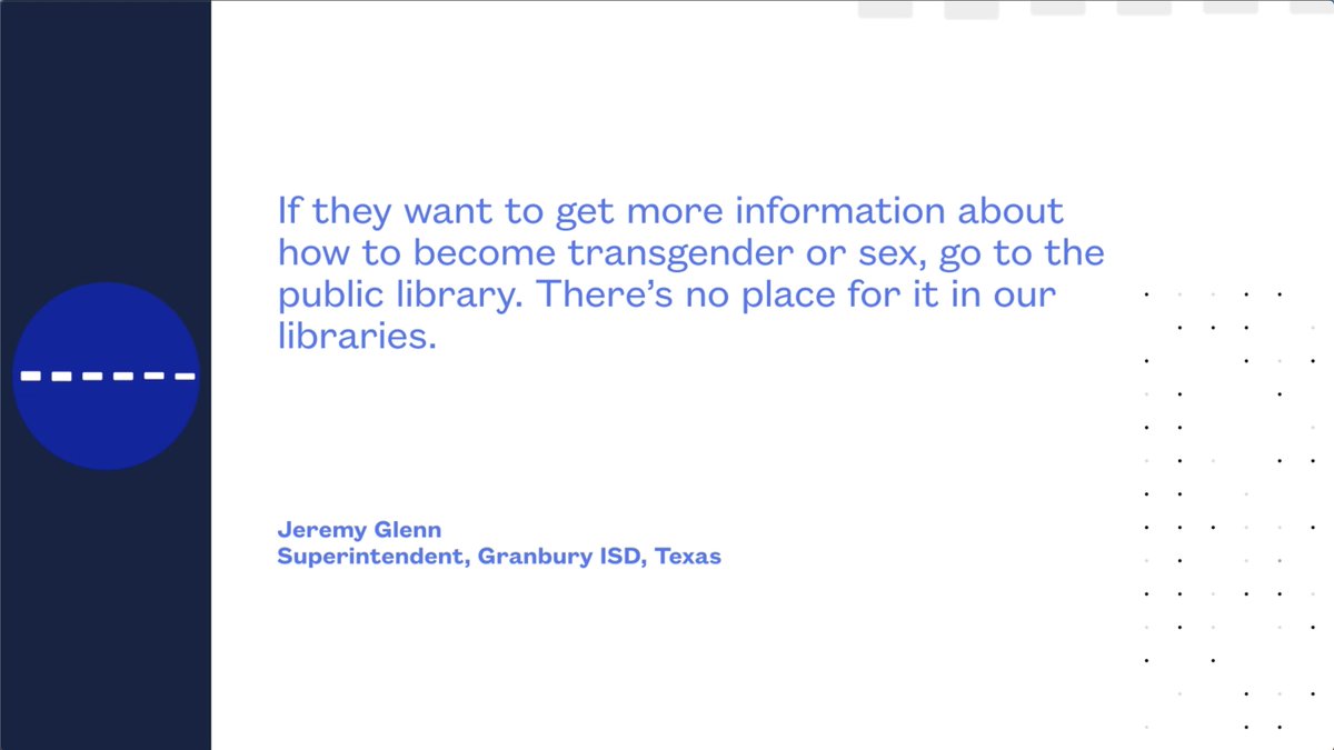 “Specifically, what we’re getting at,” Glenn said about books targeted for removal. “It’s the transgender, LGBTQ and the sex—sexuality—in books. That’s what the governor has said that he will prosecute people for, and that’s what we’re pulling out.”https://propub.li/36EcuJG