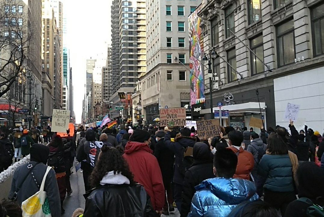 Several hundred people from the Washington Square Park "Unite Against White Nationalism" rally are now marching through Chelsea. This protest is in response to anti-Asian/AAPI violence happening in New York and across the country.pic.twitter.com/Qy3kG3tRiK