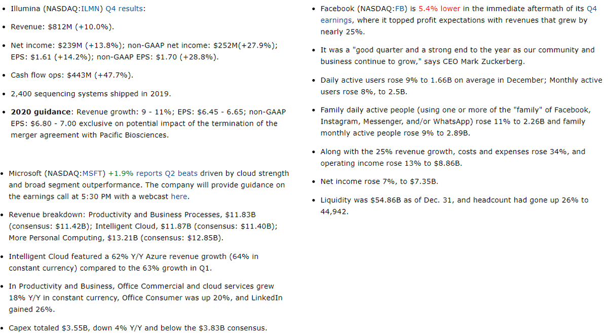 Facebook, solid results but aftermarket shows a drop of -6% Paypal, growth on all front, EPS drop in Q4, showing a drop of -5% in aftermarket Microsoft, super result Illumina, super result Both on the SIP list tomorrow https://twitter.com/proxy_investor/status/1222568745886998529 …pic.twitter.com/5wwwbwFXa0
