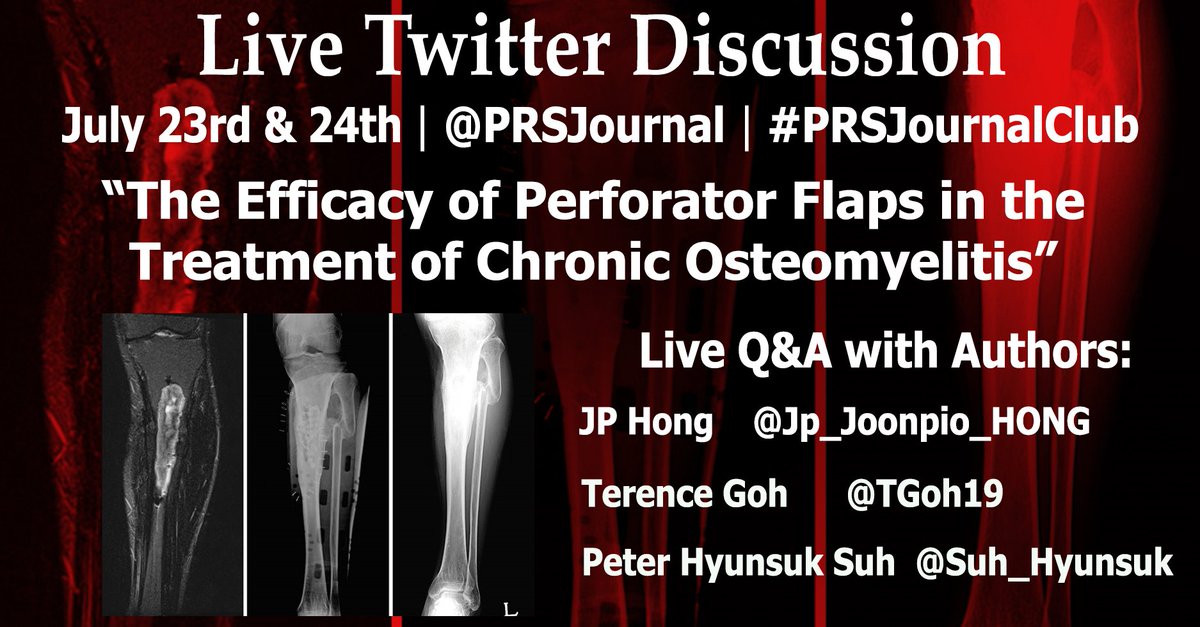 #PRSJournalClub@Twitter discussion on Perforator Flaps in Treatment of#Chronic Osteomyelitis THIS weekend 7/23-24: http://bit.ly/EffPFlaps pic.twitter.com/m0uhRRYTYr