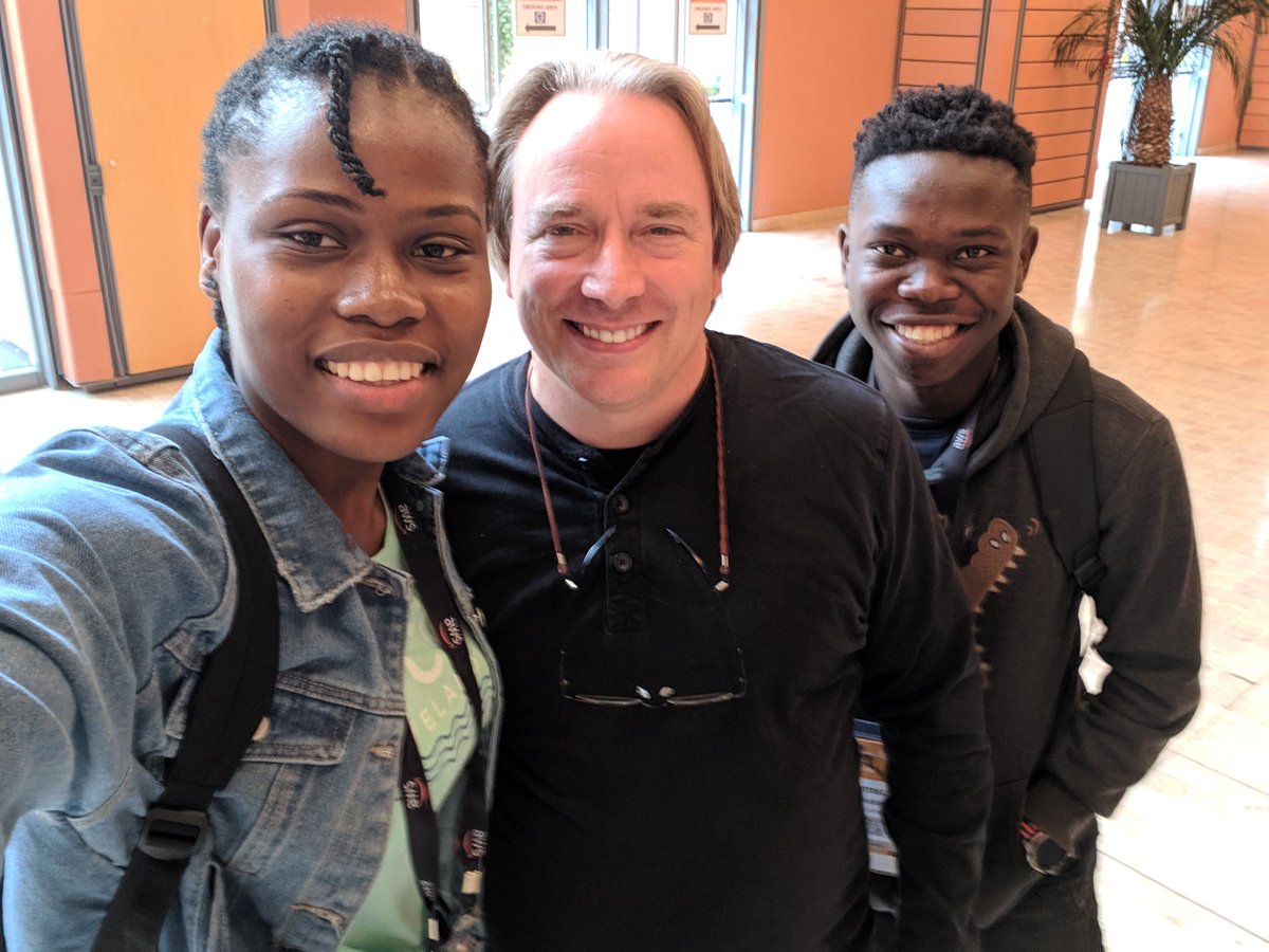 ..@Peace_Ojemeh and I just met the creator of #Linux and #Git, Linus Torvalds. Safe to say, it was a great day🔥🔥🔥. #OSSummit #ossEUpic.twitter.com/aEw4DcFAgN