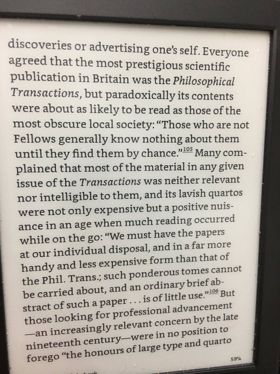 Certain journals, such as the Philosophical Transactions, quickly became means of garnering reputation ... even if the papers themselves were all but inaccessiblepic.twitter.com/qJpESku8jB