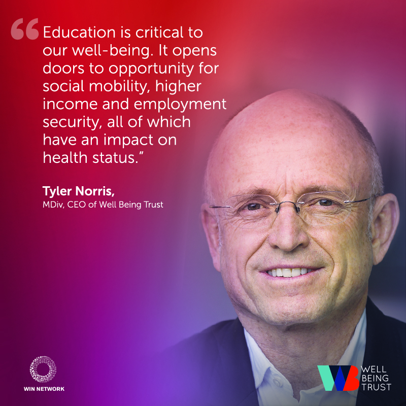 "Education is critical to our well-being. It opens doors to opportunity for social mobility, higher income and employment security, all of which have an impact on health status." Tyler Norris, MDiv, CEO of
