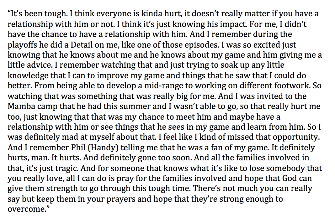 The NBA champion talks about: