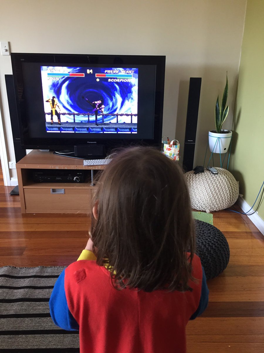 Ms 4yrs smashing buttons whilst playing Mortal Combat on a