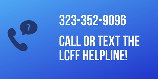#LCFF helpline has been created! Are we serious? Yes! Just call or text 323-352-9096, leave your name and question in English or Spanish, and someone will call you back. Thank you@FamsInSchools for creating this amazing resource for parents and students!#WeMakeLCFFWorkpic.twitter.com/2n0dsokb91