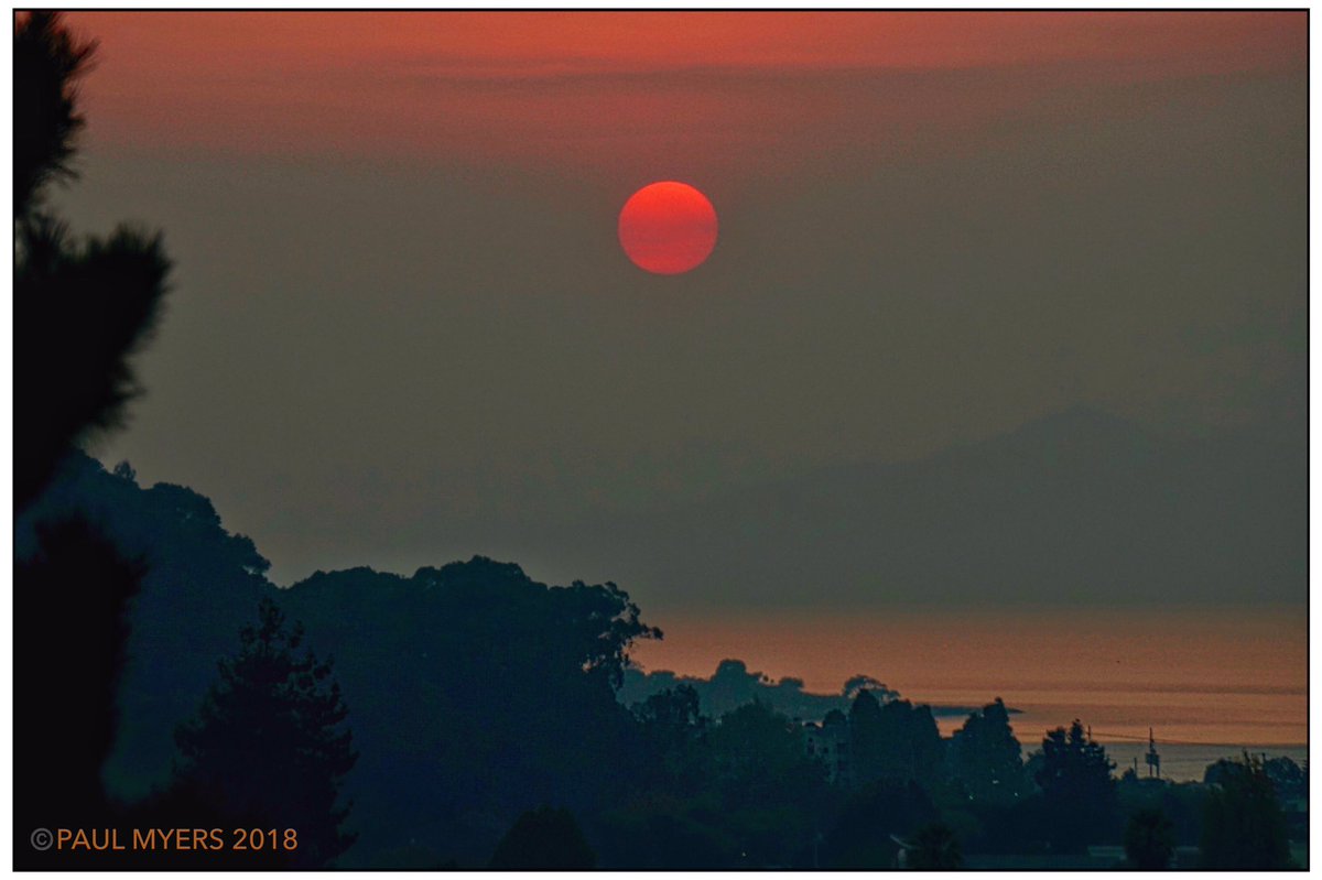Smoke from the #CampFire (In Paradise, CA, 200 miles north of us) created a beautiful but a sobering sunset Thursday, a sad reminder that fire season is now a year round thing thanks to human-made climate change. Acting governor Gavin Newsom has declared a state of emergency.pic.twitter.com/NOqjMVYECa