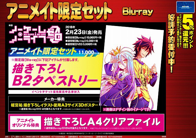 【ノーゲーム・ノーライフ ゼロ アニメイト限定セット】 アニメイト限定セットには【描き下ろしB2タペストリー】がつきます! こちらのアニメイトオリジナル特典は【描き下ろしA4クリアファイル】です! ご予約はコチラ⇒ http://bit.ly/2B7rLgX