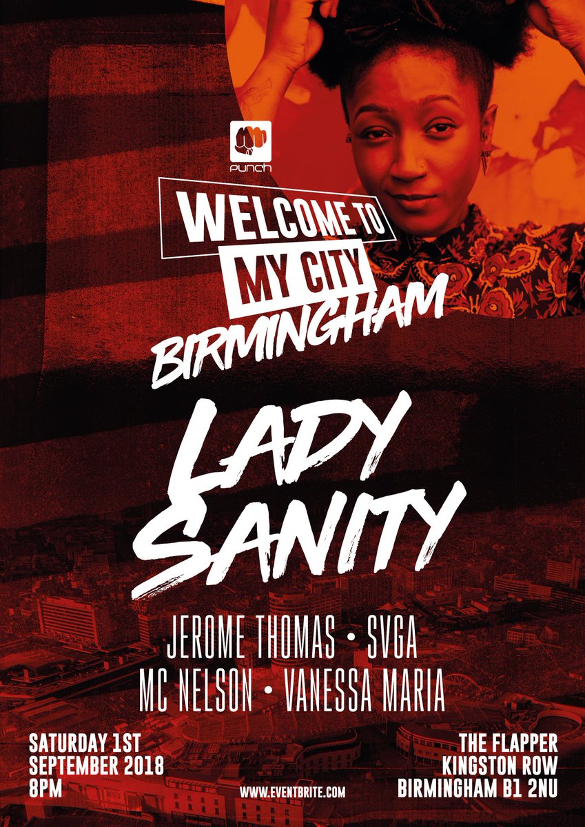 #Birmingham on this year's Welcome to My City Tour is MC@Ladysanity fusing her love for reggae, hip-hop & garage music with influence from@MsLaurynHill@ATCQ &@ms_dynamite! Headlining@TheFlapperBrum on SAT 1ST SEPT TIX: http://welcomebirmingham.eventbrite.com#MyCityTourpic.twitter.com/bV9z3zp6eH