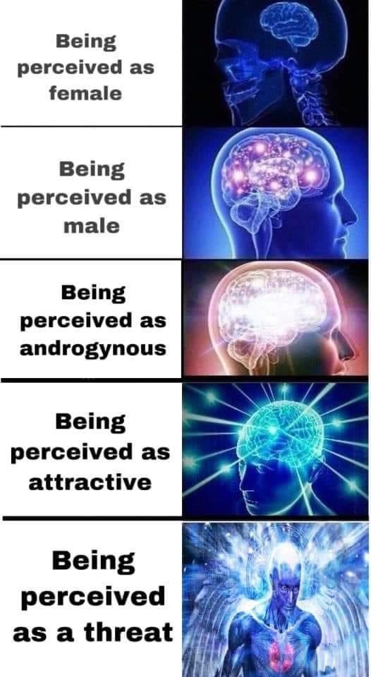 [i go back and forth between hating being perceived as male more but when the rare stranger does perceive me as male they affirm me as "he" so that's the ONLY reason it tops being perceived as fEmAlE]