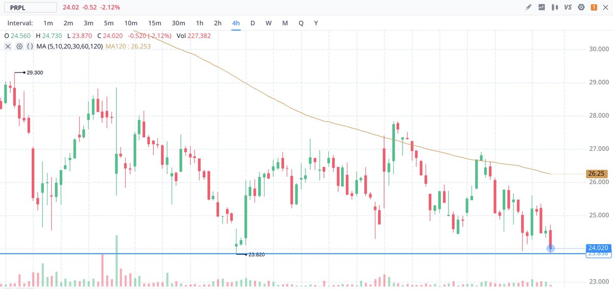$PRPL speculative bounce play. Bottom around $23.80. Last time it touched this level it had a 17% run.. let's see if it holdspic.twitter.com/fCqArIU9fv