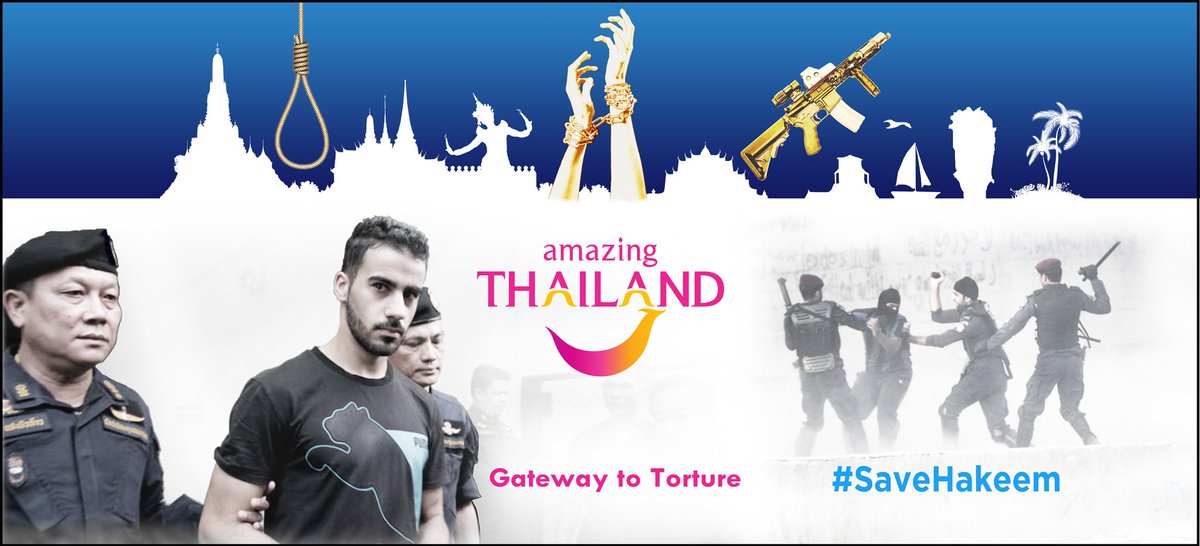 Thinking of a holiday in #Thailand think twice. No #HumanRights No law. #AmazingThailand @LoveThailand @MOTSThai @prdthailand @prayutofficial @MFAThai @hakparn #AsianCup2019 #FreeHakeem #SaveHakeempic.twitter.com/96YsZ2446X