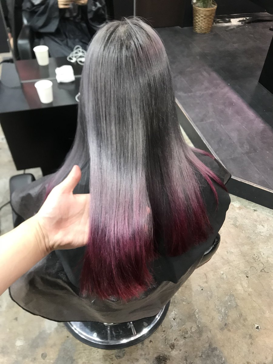 本日のお客様!! 一回シルバーに染めてから毛先に赤を入れました〜! ロングヘアの人はトリートメントブリーチでしっかりケアしながらカラーしていきましょうー!!pic.twitter.com/SCQNDLfl7L