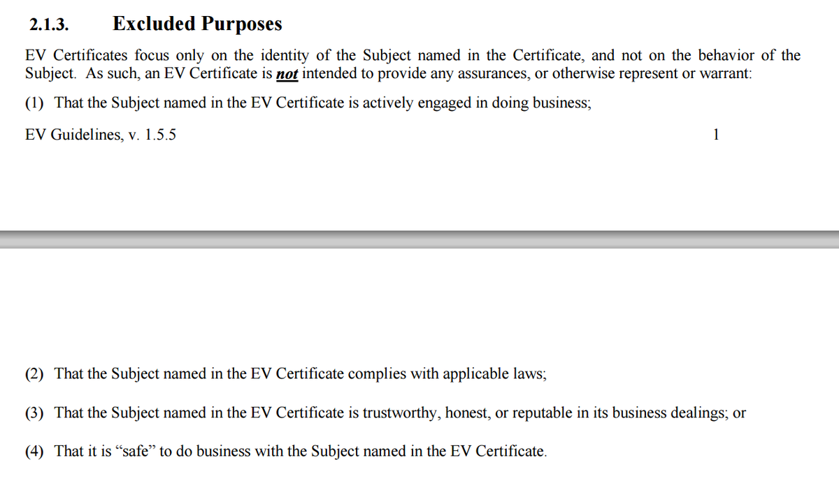 @chosensecurity See EVG. Not certifying that Subject is trustworthy, honest, or reputable in its business dealings.pic.twitter.com/6PdKvj5XDa