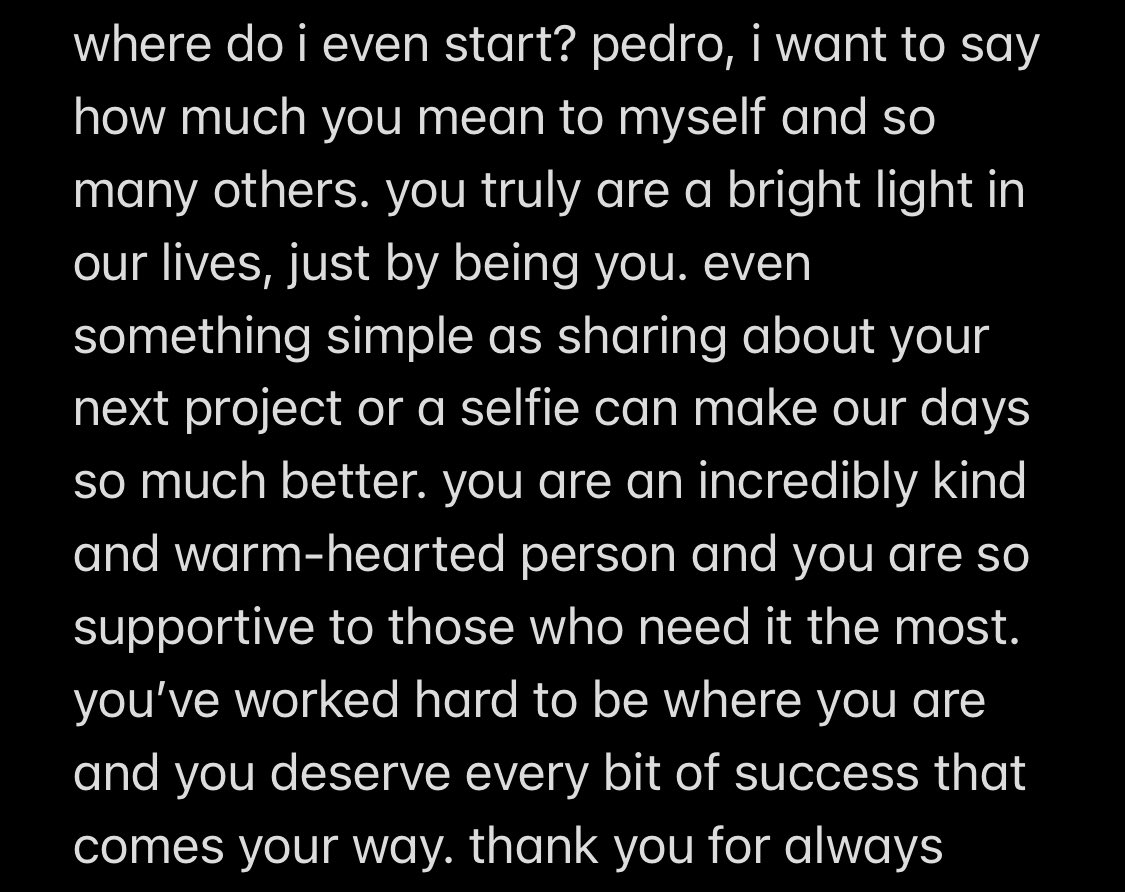 pedro means so much to so many people and loves us very much. to even give that love back to him is more than enough to say how thankful we all are.