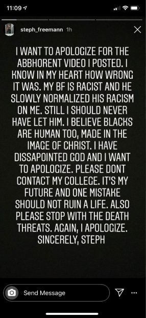 A couple of vile white supremacists made a well thought out, disgusting anti-Black video, in hopes of going viral. They went viral, then got expelled from Carrollton High School (which has a major anti-Black problem from what I have gathered). Now "Steph" posted a janky apologypic.twitter.com/Wm3ojZZXQT