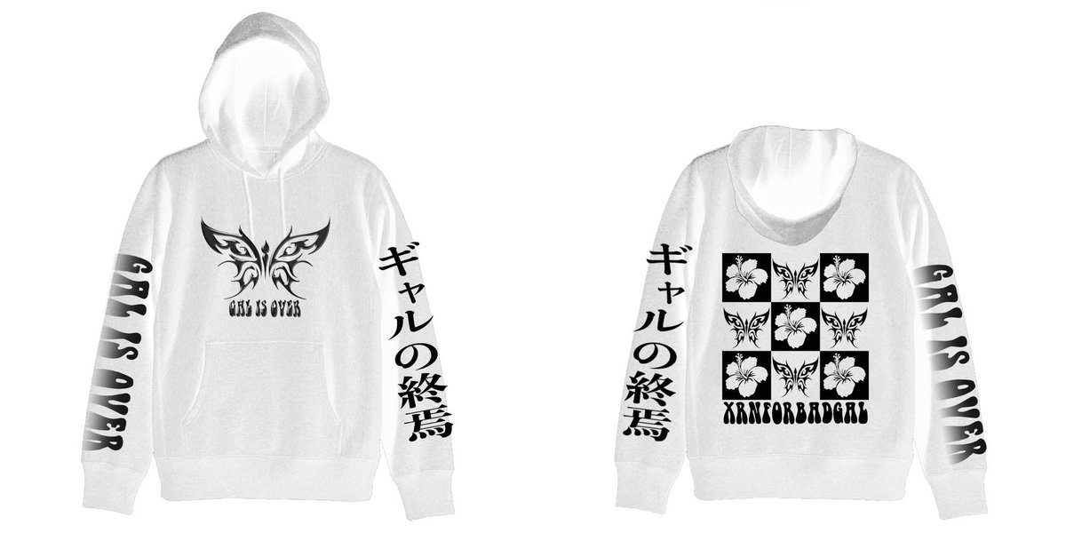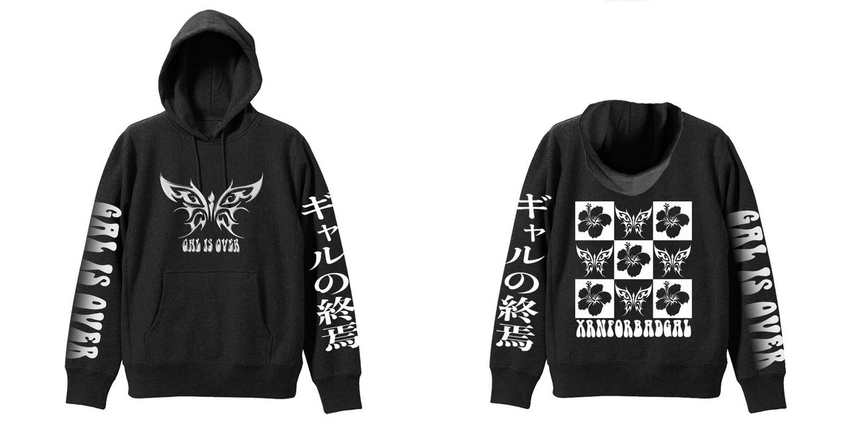 汚ギャルパーカー 「ギャルの終焉」 ハイビスカス VS バタフライ。 汚ギャルはこのパーカーを一生着てます。 一生タバコ臭い。これ着てド◯キとかいく。 家に帰らなかった奴が勝ち。 現代は綺麗なギャルが市民権を得ています。 背中ではオセロゲームが繰り広げられています。 GAL IS OVER.pic.twitter.com/JYtCYgUCP0