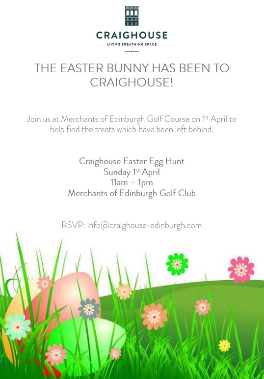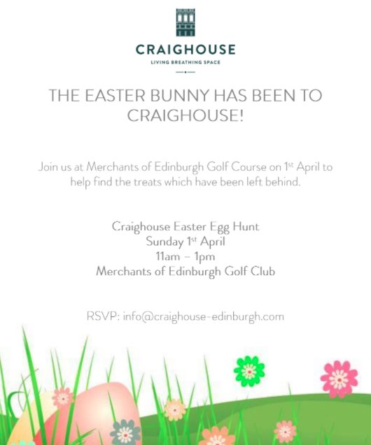 The Easter bunny has been to Craighouse. Join us on Easter Sunday at 11 am to find the treats left behind!