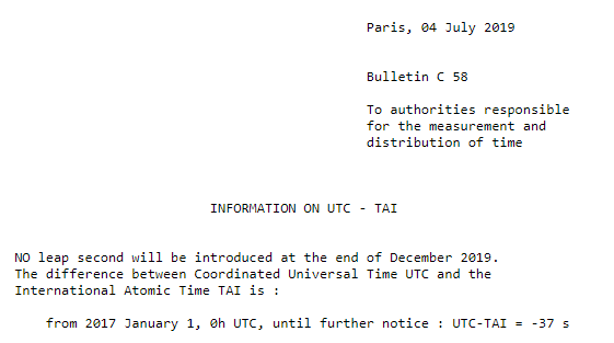 Specifically, leap seconds (or lack thereof) are announced in IERS Bulletin C, which is charmingly addressed "To authorities responsible for the measurement and distribution of time"pic.twitter.com/Qn7FoJbLSX