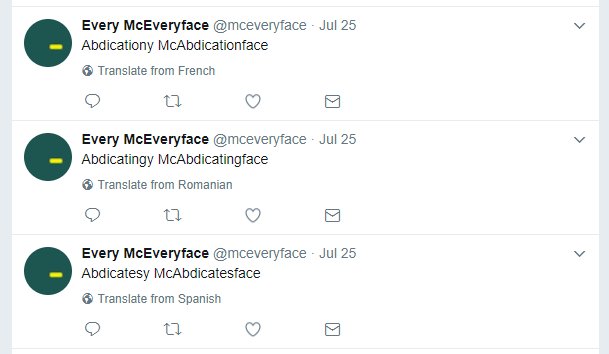 Twitter's language inference routine is having a hilariously bad time with @mceveryface's tweets, I've also seen Polish, Indonesian...pic.twitter.com/bU0saXDkE9